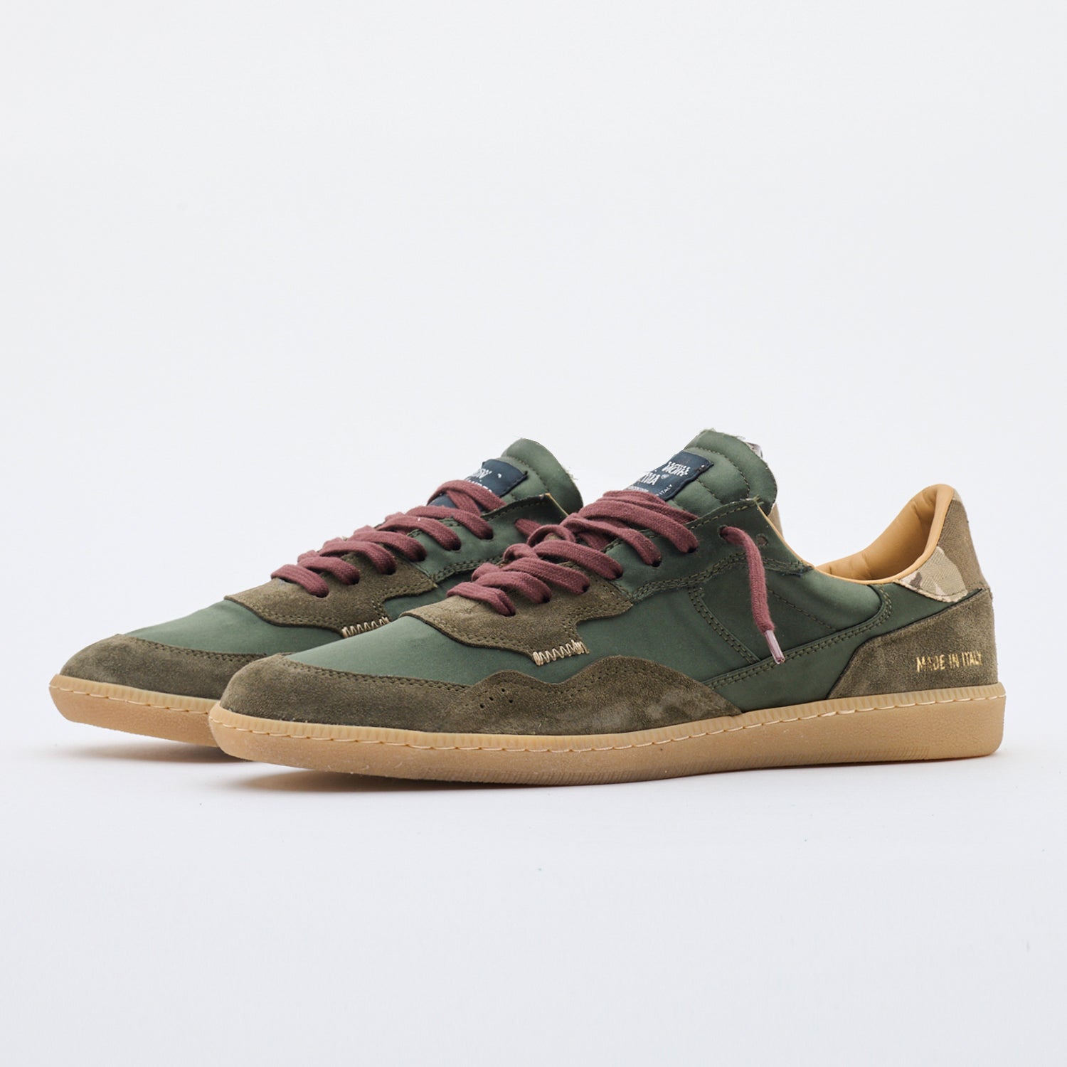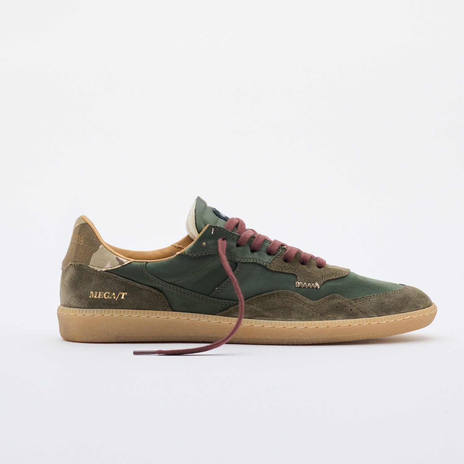 A fusion of inspirations from the world of tennis, the Italian-made Mega T is the shoe for legends. The upper is crafted from suede and leather while the outsole is low profile and rendered in retro rubber. A fine example of our sustainable approach to design. HIDN-ANDER® blends cultures to build a bold new world. Completely: Made in Italy.
