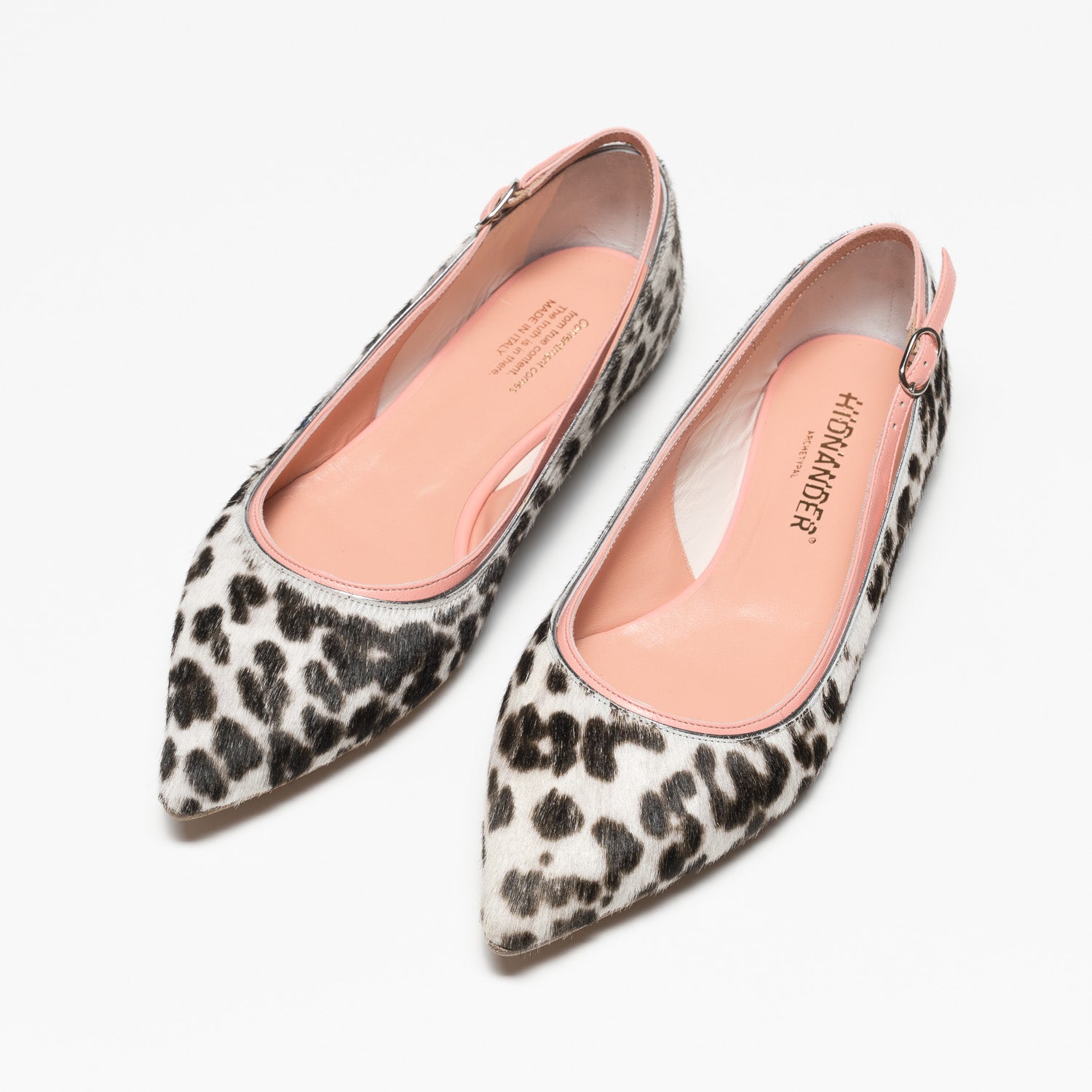 Ballet flats are a long-standing French style staple. HIDN-ANDER®. fused two iconic styles into a unique one and giving it a worn look, an unconventional way to express its creativity in a classical segment. It's comfortable and easy-to-wear shoe which bring “street" and “elegant” terms into your style. Elasticated slingback strap, light-cushioned footbed, pointed toe. Heel 1,5 cm. Completely Made in Italy.