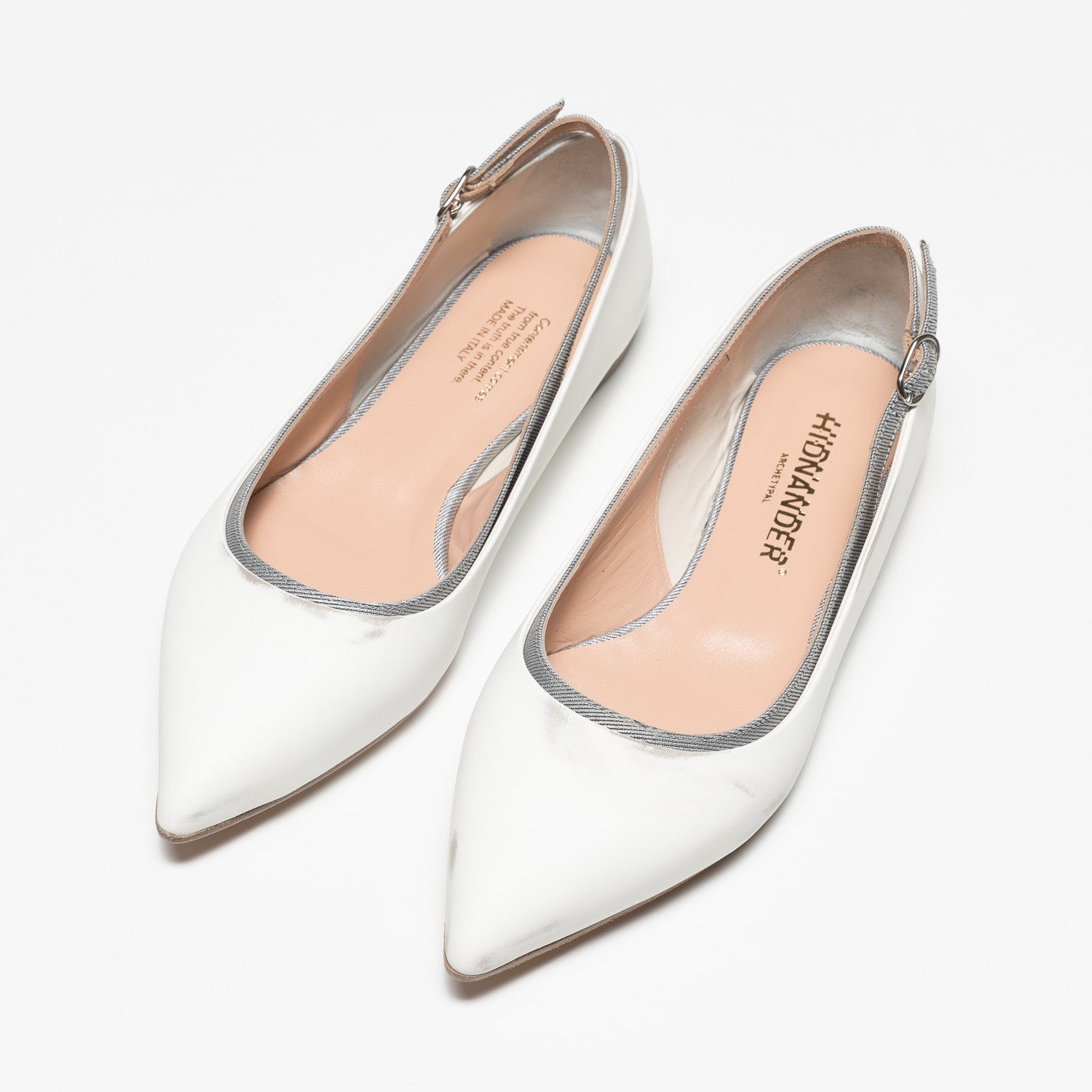 HIDN-ANDER® iconic style clash; The symbols of femininity par excellence, a sensual décolleté into an elegant sandal, a unique timeless result, enhanced by the just worn, handmade look. Completely Made in Italy.