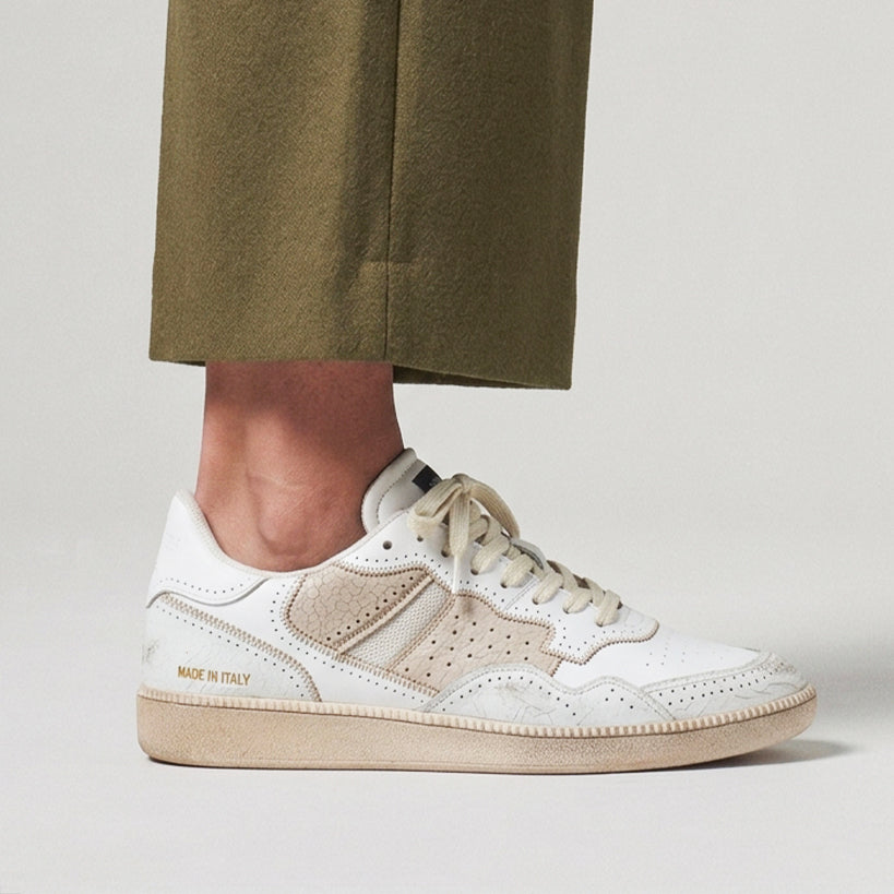 A fusion of inspirations from the world of tennis, the Italian-made Mega T is the shoe for legends. The upper is crafted from suede and leather while the outsole is low profile and rendered in retro rubber. A fine example of our sustainable approach to design. HIDN-ANDER® blends cultures to build a bold new world. Completely: Made in Italy.